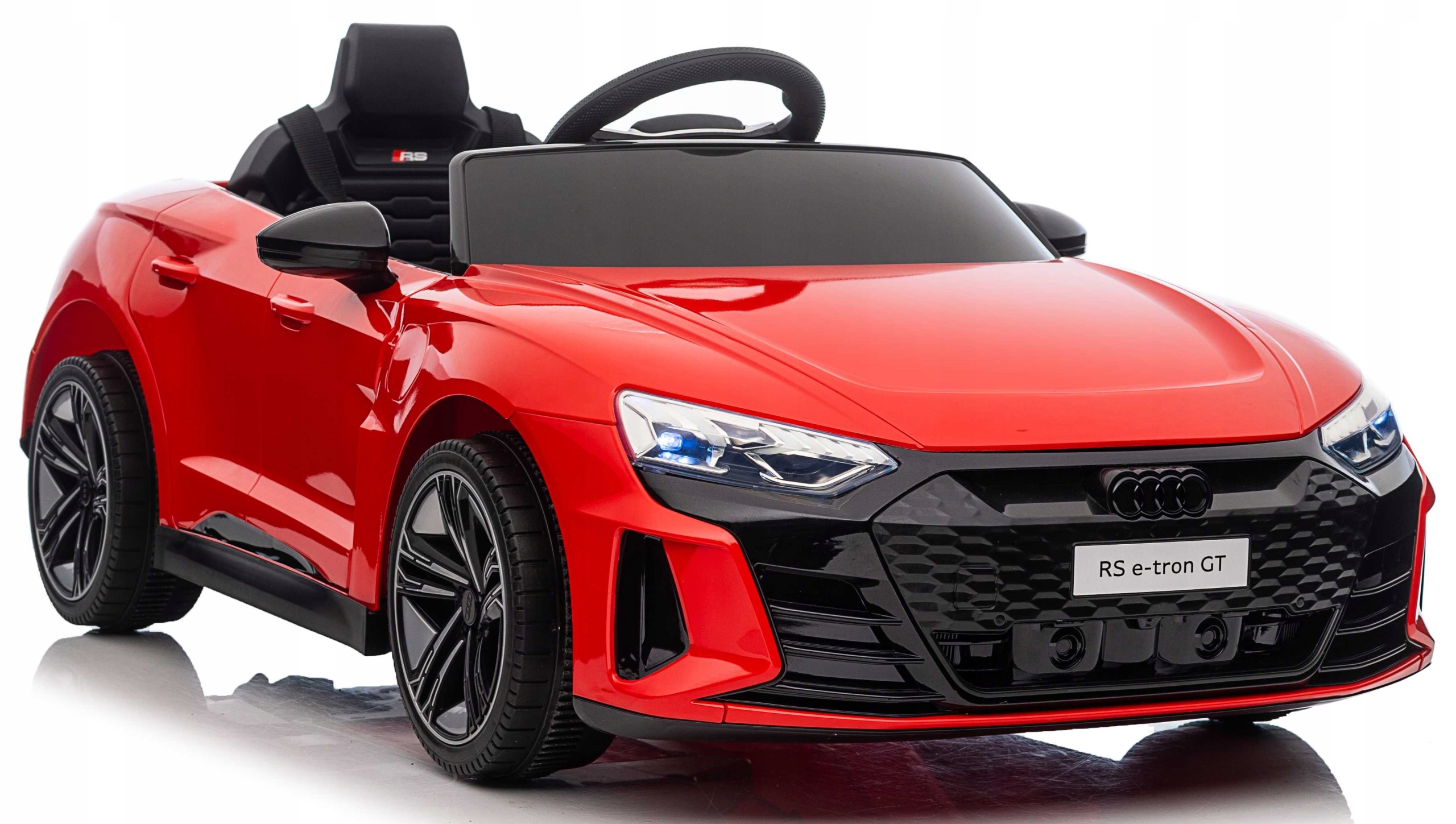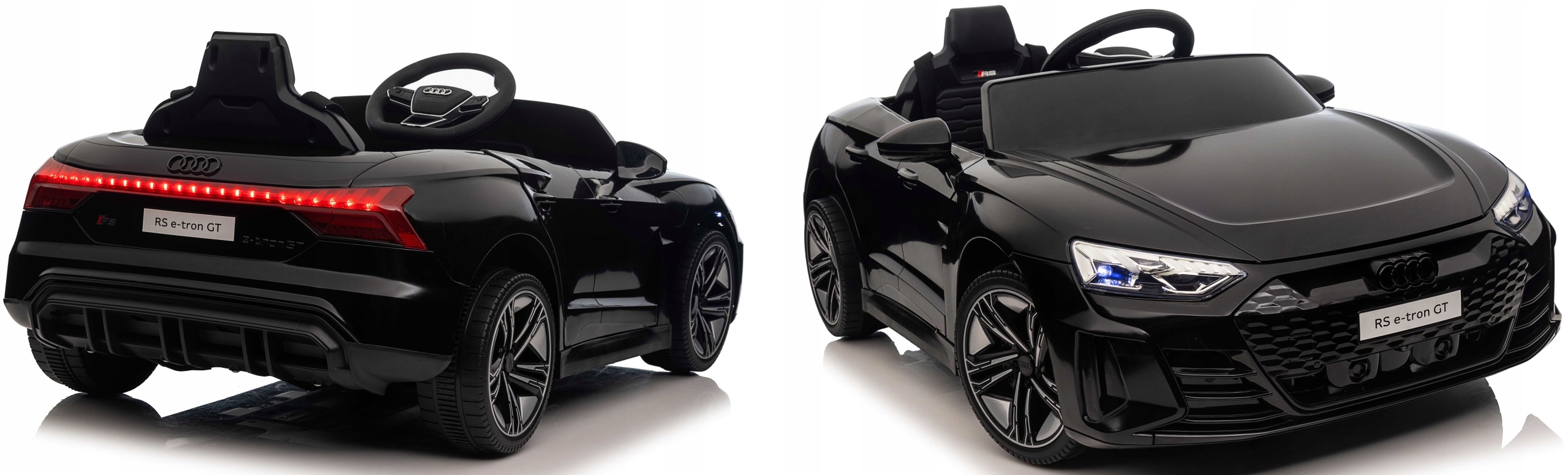 Samochód audi e-tron rs gt to pojazd na akumulator na licencji audi. Pojazd posiada otwierane drzwi z obu stron. Napęd zapewniają mu cztery potężne silniki elektryczne, zasilane akumulatorem 12v7ah. Na wyposażeniu pojazdu znajdują się uruchamiane przyciskami efekty dźwiękowe, wejście na odtwarzacz mp3, port usb,port tf, regulator głośności, światła led, miękkie siedzisko z eko-skóry, koła piankowe eva. Dostępne są 3 prędkości poruszania. Bezpieczną naukę jazdy zapewnia dołączony pilot zdalnego sterowania 2.4g, dający rodzicowi pełną kontrolę nad pojazdem.