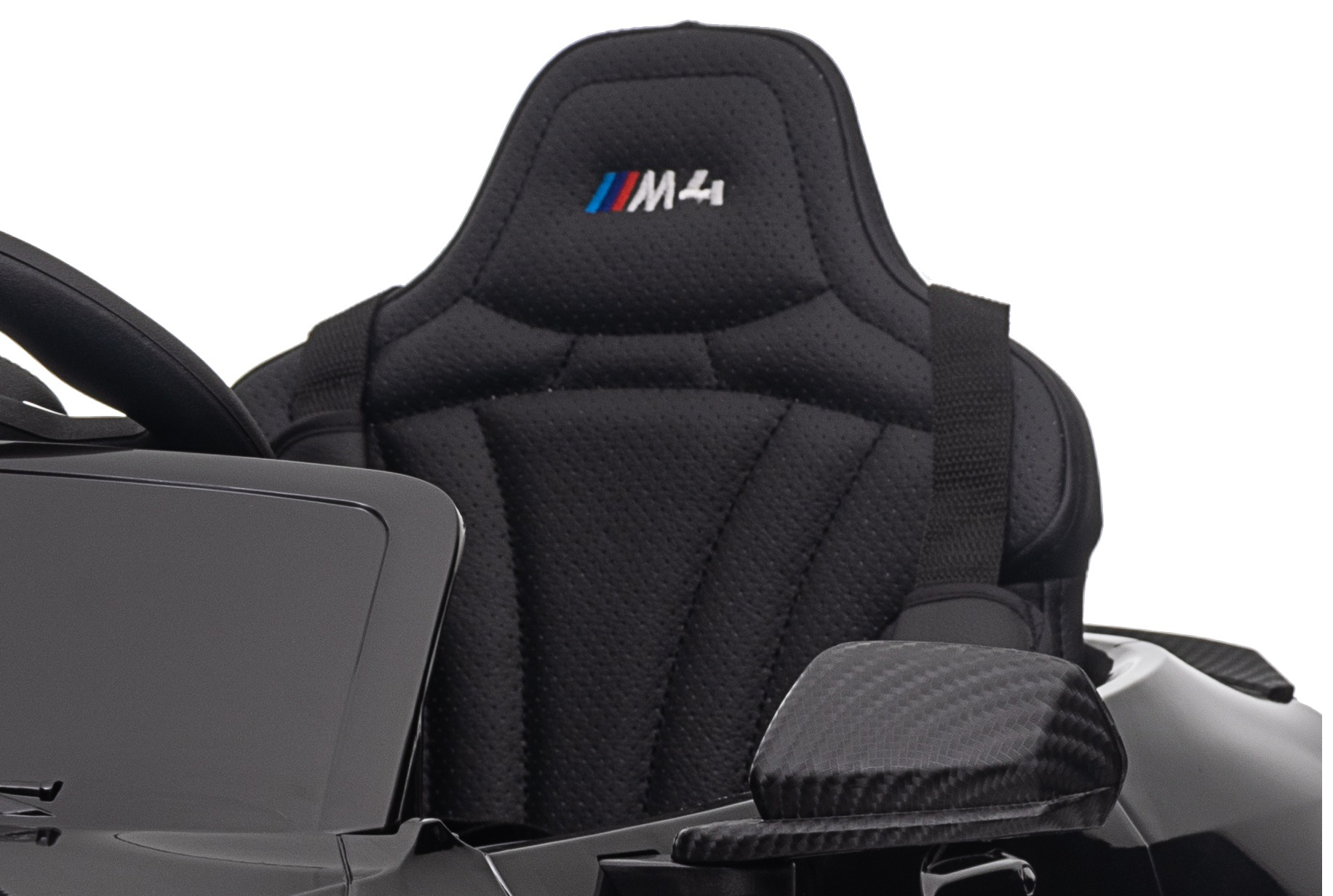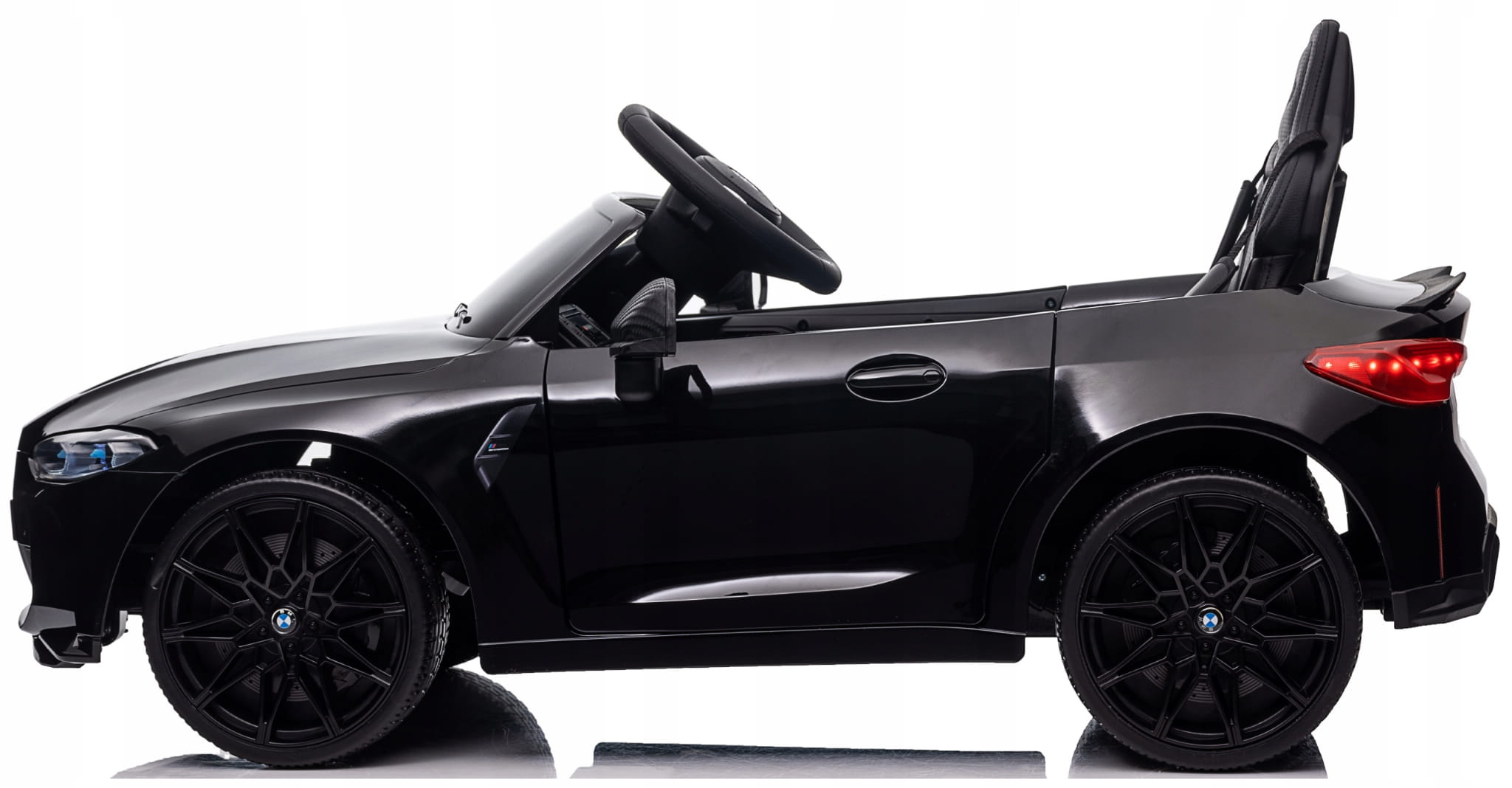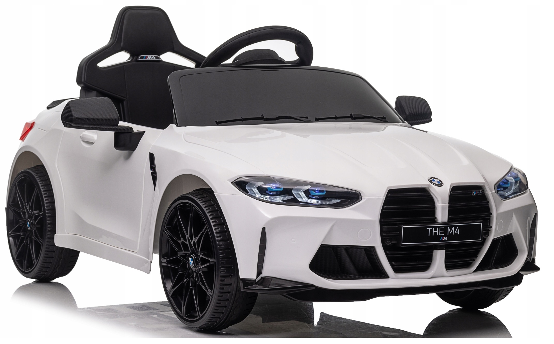 Samochód bmw the m4 to pojazd na akumulator na licencji bmw. Pojazd posiada otwierane drzwi z obu stron. Napęd zapewniają mu dwa potężne silniki elektryczne każdy po 45w, zasilane akumulatorem 12v. Na wyposażeniu pojazdu znajdują się uruchamiane przyciskami efekty dźwiękowe, wejście na odtwarzacz mp3, regulator głośności, światła led, miękkie siedzisko z eko-skóry, koła piankowe eva. Dostępne są 3 prędkości poruszania. Bezpieczną naukę jazdy zapewnia dołączony pilot zdalnego sterowania 2.4g, dający rodzicowi pełną kontrolę nad pojazdem.