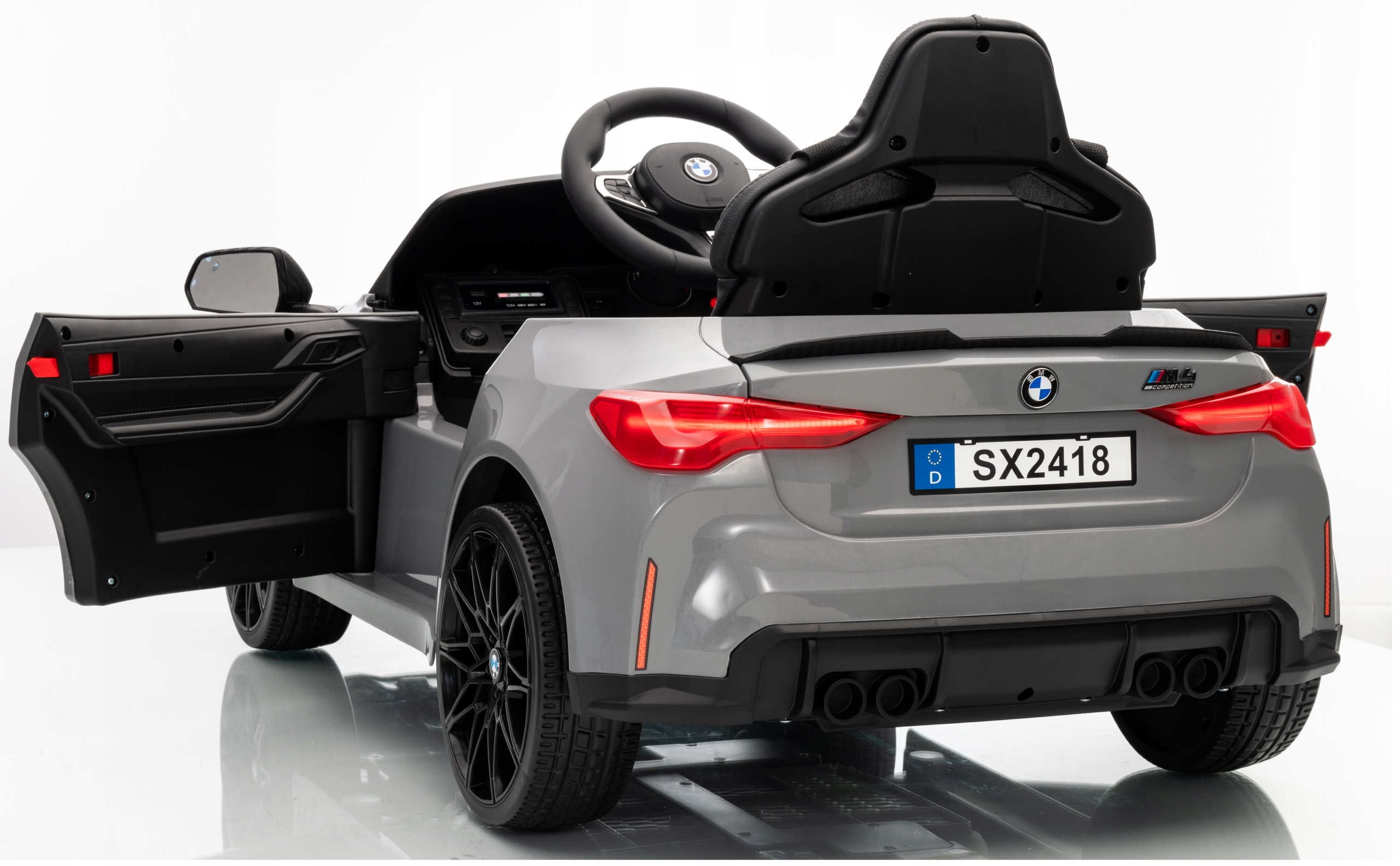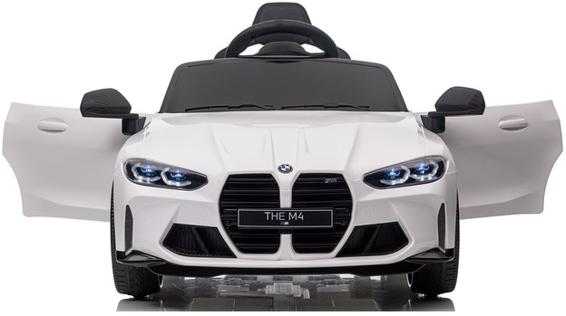 Samochód bmw the m4 to pojazd na akumulator na licencji bmw. Pojazd posiada otwierane drzwi z obu stron. Napęd zapewniają mu dwa potężne silniki elektryczne każdy po 45w, zasilane akumulatorem 12v. Na wyposażeniu pojazdu znajdują się uruchamiane przyciskami efekty dźwiękowe, wejście na odtwarzacz mp3, regulator głośności, światła led, miękkie siedzisko z eko-skóry, koła piankowe eva. Dostępne są 3 prędkości poruszania. Bezpieczną naukę jazdy zapewnia dołączony pilot zdalnego sterowania 2.4g, dający rodzicowi pełną kontrolę nad pojazdem.