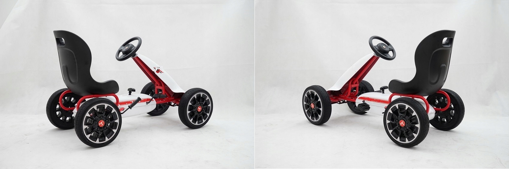 Gokart na pedały z piankowymi kołami eva i hamulcem ręcznym. Przeznaczony dla dzieci 3-8 lat