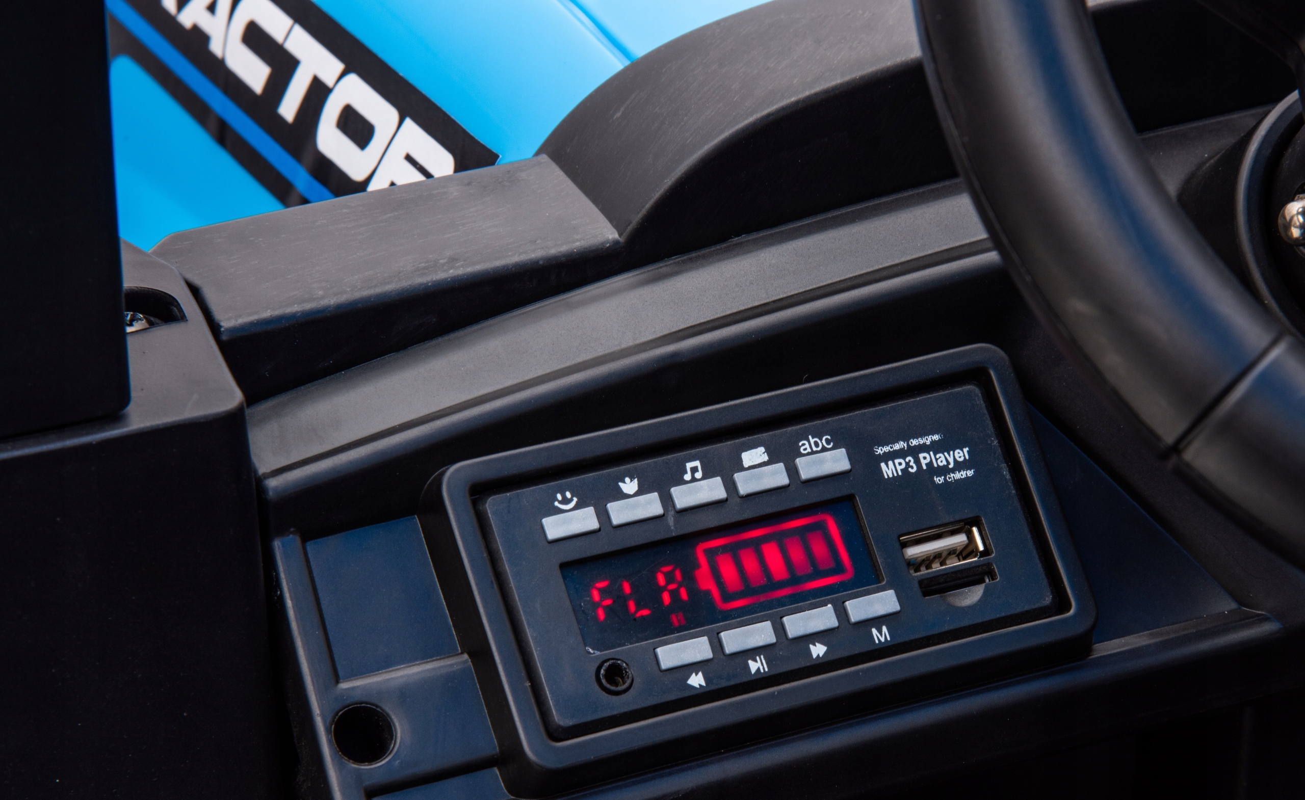 Napęd zapewniają mu potężne silniki elektryczne 24v 200 wat każdy (łącznie 400wat), zasilane dwoma akumulatorami o łącznej pojemności 24v 10ah. Na wyposażeniu pojazdu znajdują się uruchamiane przyciskami efekty dźwiękowe, port usb - możliwość słuchania muzyki z pendrive, regulator głośności, światła led, miękkie siedzisko z eko-skóry, koła piankowe eva. Dostępne są 3 prędkości poruszania z pilota. Bezpieczną naukę jazdy zapewnia dołączony pilot zdalnego sterowania 2.4g, dający rodzicowi pełną kontrolę nad pojazdem. Dach ewentualnie można zdemontować.